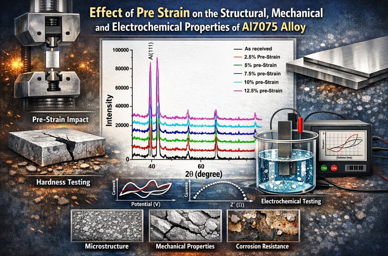 We advance a data-driven materials engineering platform that quantifies the coupled effects of pre-strain on strength, durability, and corrosion performance of high-strength Al-Zn-Mg-Cu alloys. The technology integrates mechanical testing, electrochemical diagnostics, and microstructural analytics to predict real-world service life under aggressive enviroments. By enabling informed trade-offs between forming, performance, and corrosion risk, it supports safer, lighter, and longer-lasting aerospace and defense components.